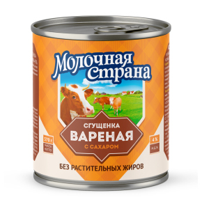 Продукт молочный "Сгущенка Вареная" Молочная страна 4% м.д.ж., ж/б 370 г л/о (Без ЗМЖ!) Промконсервы ООО(производитель) - Купить в магазине "Светофор" город Данков, ул.Чкалова,д.15а